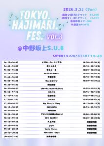📝イベント名 ☆☆『TOKYO.HAJIMARI.FES Vol. 3 』